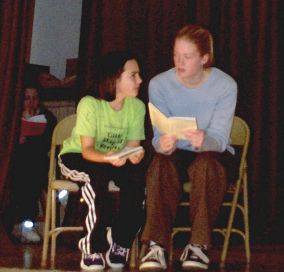 Little Gloria (Kari Davis) and Fatima (Erica Smith) discuss their characters. |